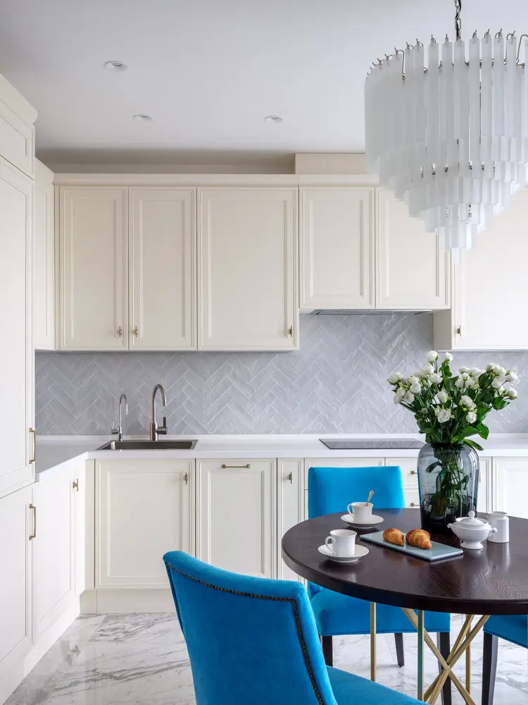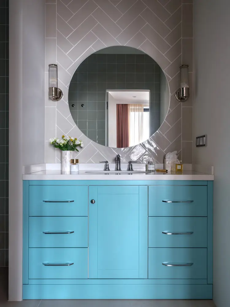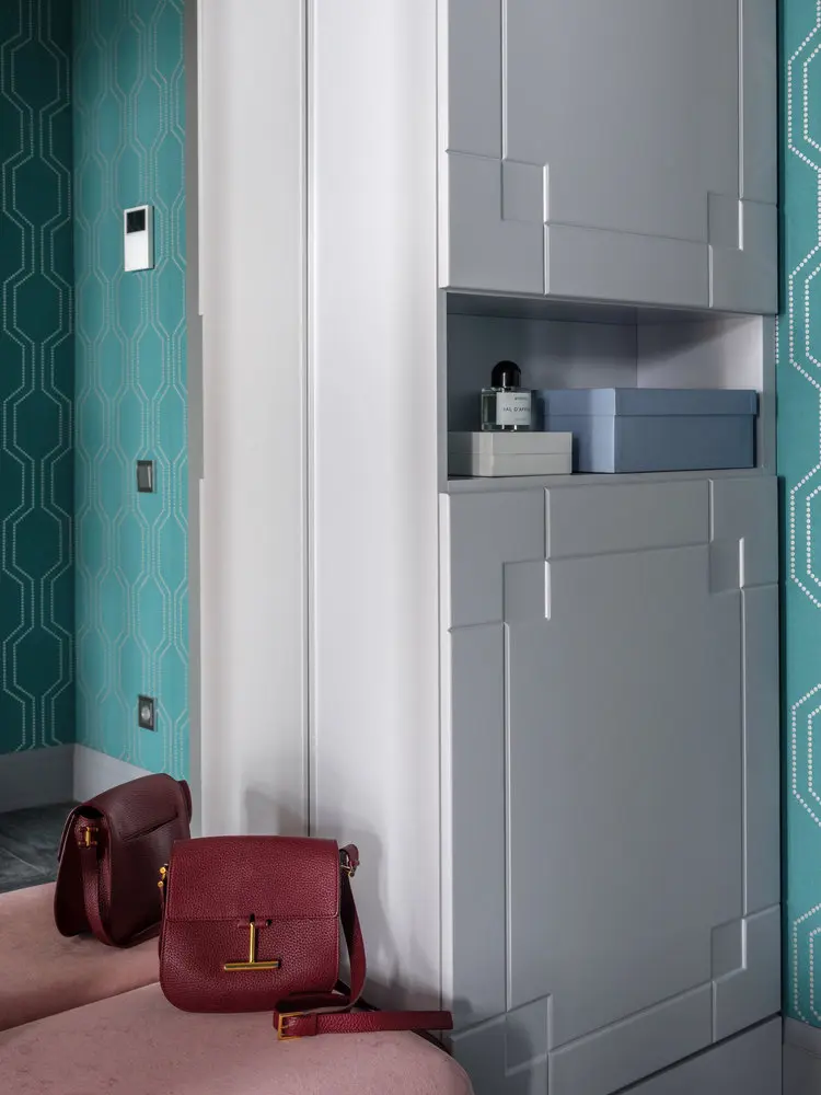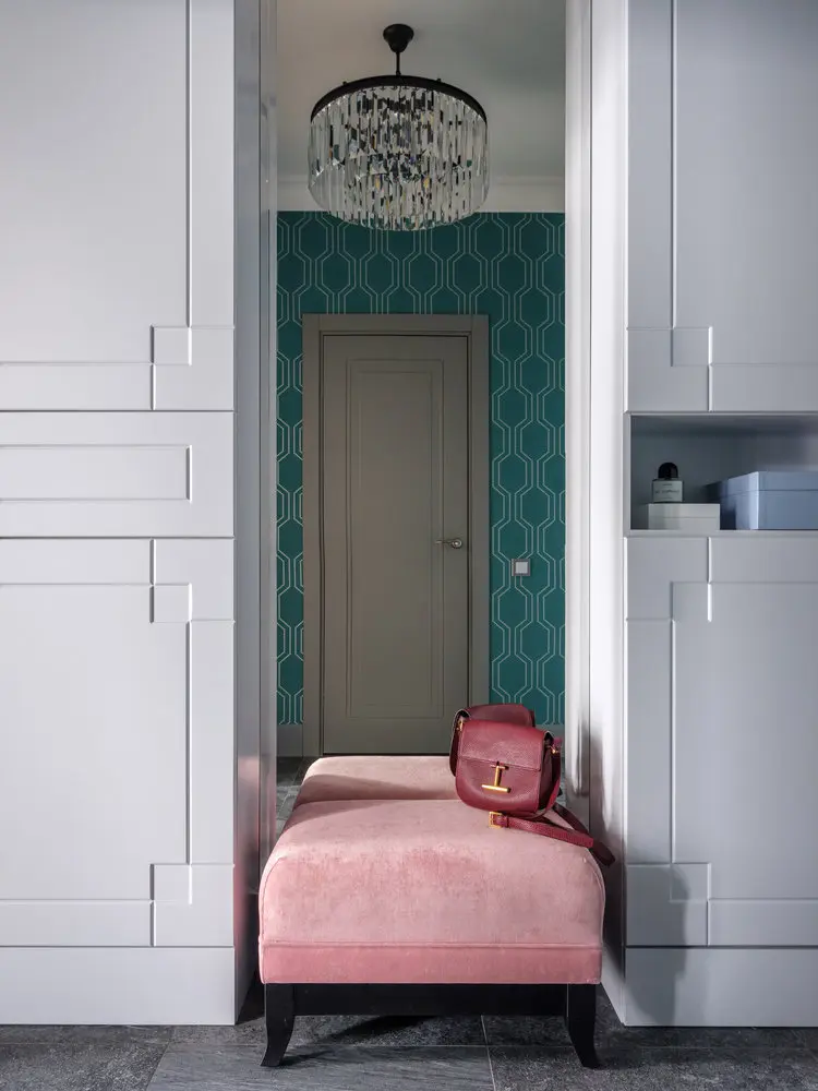 Proprietarul acestui apartament este o doamna tanara, activa, care aloca mult timp vietii profesionale si calatoreste mult. Locuind toata viata in zona de sud-vest a Moscovei, cumpararea propriului apartament intr-o zona exclusivista a orasului a fost un vis devenit realitate. Inca de la inceput, cand a apelat la serviciile unui birou local de arhitectura, a stiut ca doreste o amenajare intr-un stil modern cu puternice influente clasice. Un element cheie catre succesul rezultatului final l-a constituit si disponibilitatea clientului de a experimenta cu culorile si a alege nuante puternice, curajoase. Poate fi observata culoarea smarald a tapetului din hol, albastrul intens al chenarului dintre living si bucatarie, faianta si mobilierul turquoise din baie. Toate acestea, echilibrate de un decor de fond cald, neutru din punct de vedere cromatic. Au fost folosiet nuante de bej, crem, roz prafuit, gri deschis.