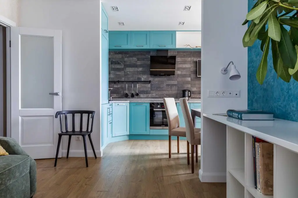 Povestea acestei amenajari a inceput cu provocarea recompartimentarii apartamentului de doua camere pentru a se adapta functional si estetic dorintelor noilor beneficiari. Atmosfera creata este una moderna, tinereasca, plina de viata si culoare; designerii au plecat de la inceputul proiectului cu o paleta cromatica bazata pe nuante de albastru si bej.