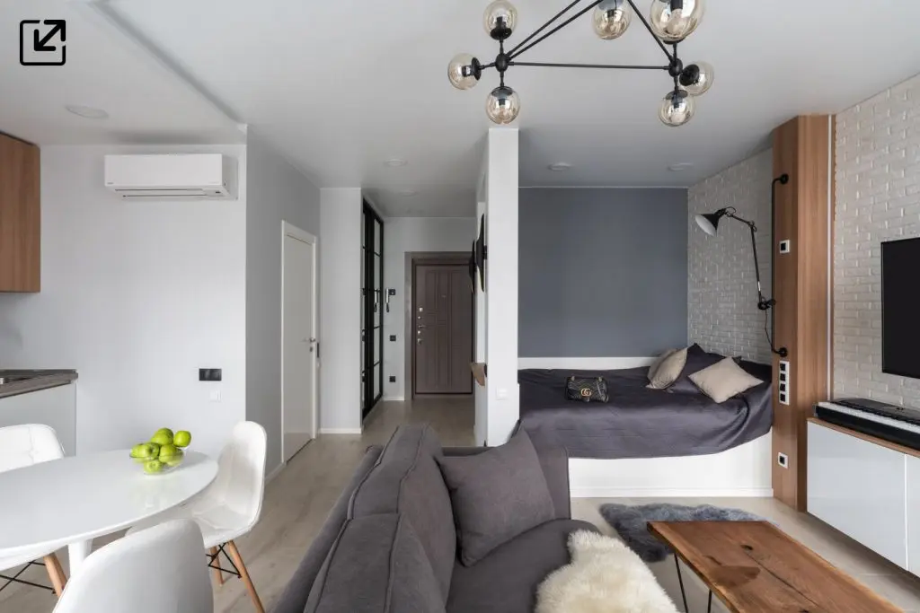Hol, living, dormitor, bucatarie si loc de luat masa – comprimare eficienta a spatiilor
