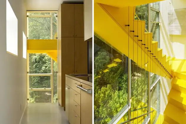 Accentele de galben si de verde sunt omniprezente in intreaga casa, iar toate acestea intregesc aspectul veritabil natural care s-a dorit a fi implementat in constructia acestei case de familie.
