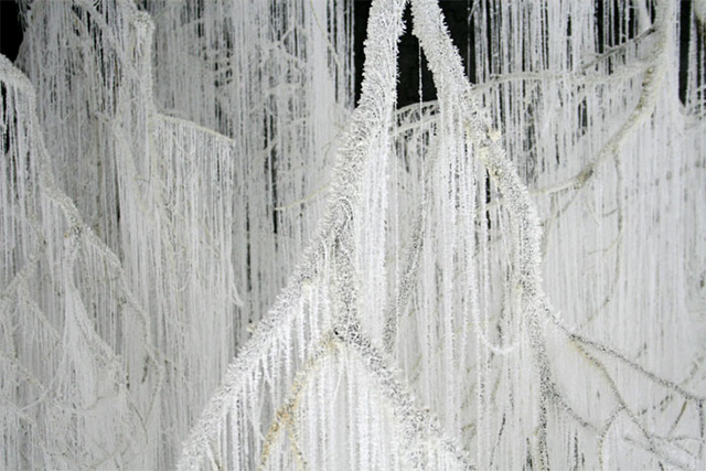Este uimitor ce a iesit din niste crengi de copacToate elementele si materialele pe care le-a folosit artistul ca sa creeze instalatia, s-au combinat intre ele, formand un intreg, cu ajutorul fortei gravitationale, actiunii, caldurii si cristalizarii.Rezultatul muncii depuse de Onishi Yasuaki, a fost unul desavarsit, creandu-se un fel de peisaj de iarnaCrengile de copac au fost acoperite de silicon fierbinte si uree cristalizata