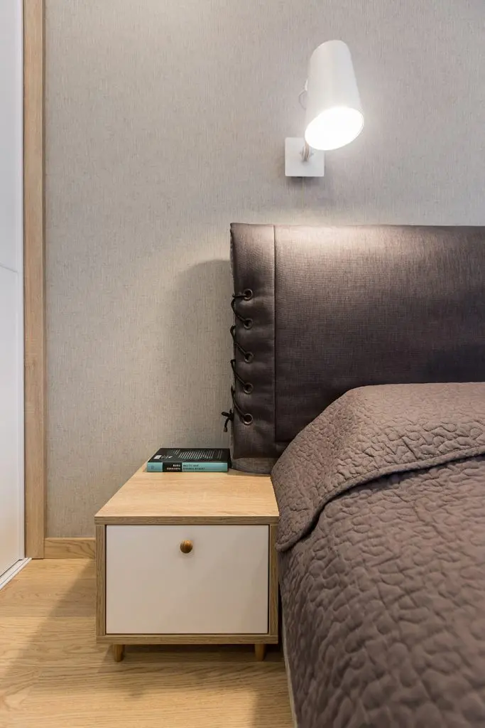 Dormitorul preia paleta cromatica a livingului, mizand insa pe cateva tonuri mai inchise. Texturile imbraca incaperea si imprima un aer confortabil, relaxant prin piese de mobilier ce nu sufoca spatiul. Nu putem rata nici baia un spatiu functional, excelent amenajat in spiritul tematicii explorate in intregul apartament.