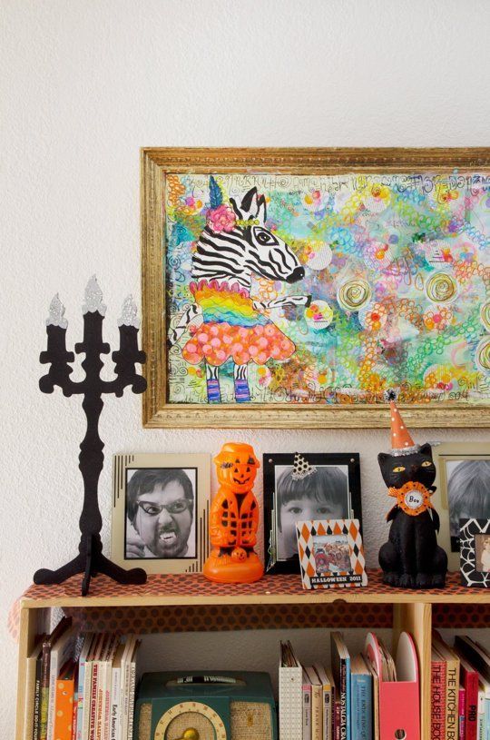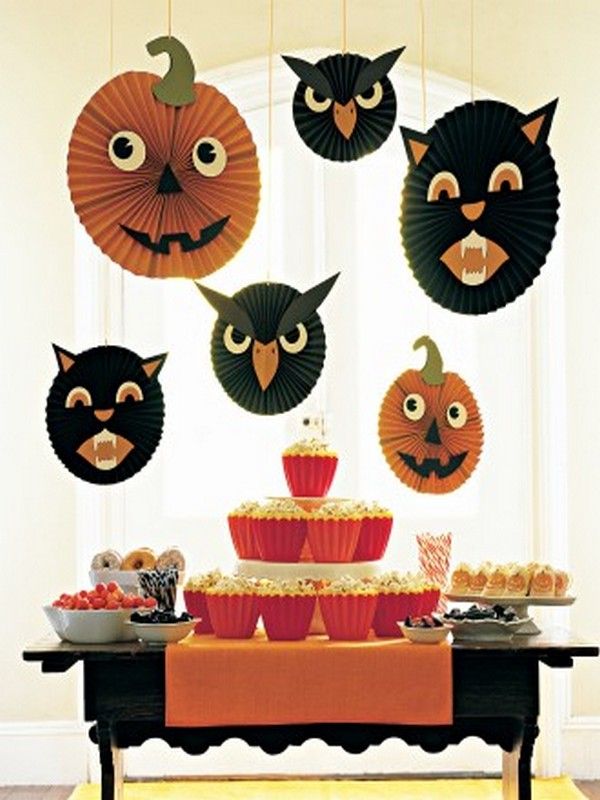 Si copiii va pot ajuta in amenajarea casei pentru Halloween: va pot decupa cateva modele de liliac pe care sa ii lipiti intr-un colt pe perete. Contrastul alb-negru va iesi cu siguranta in evidenta. La fel puteti proceda si cu cativa soricei decupati pe care sa ii lipiti in josul peretilor. Tineti pisicile deoparte, s-ar putea sa pice in capcana.