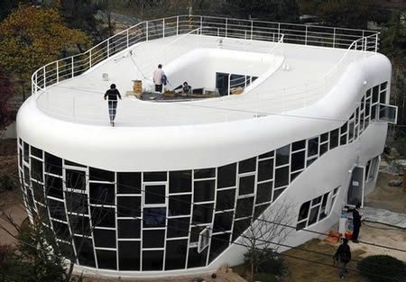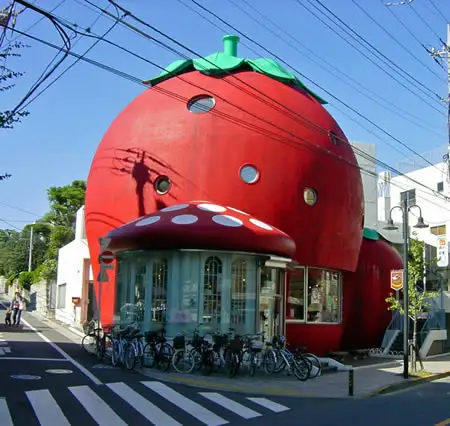 Lista de case bizare continua cu cateva constructii in forma de capsuna, butoi de muraturi, de pantof, scoica, ceainic, ibric, de ciuperca sau de nava spatiala. Poate cea mai interesanta dintre toate, cu siguranta suprinzatoare, este casa informa de toaleta din Coreea de Sud.