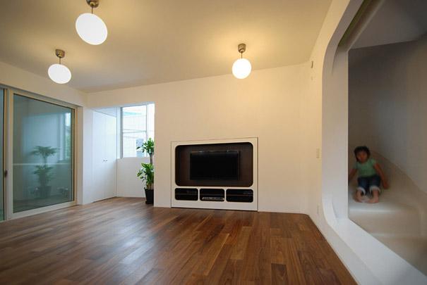 Casa cu tobogane incorporate se afla in Japonia si este perfecta pentru o o familie care are copii.