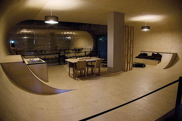Casa din imagine este realizata cu dedicatie speciala pentru iubitorii de skateboard si se afla in Statele Unite ale Americii.