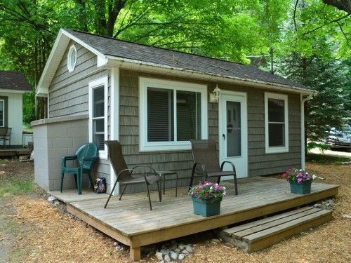 Casuta de 26 de metri patrati are un dormitor si o baie si a fost construita in anul 2010. Este inconjurata de jumatate de hectar de padure.