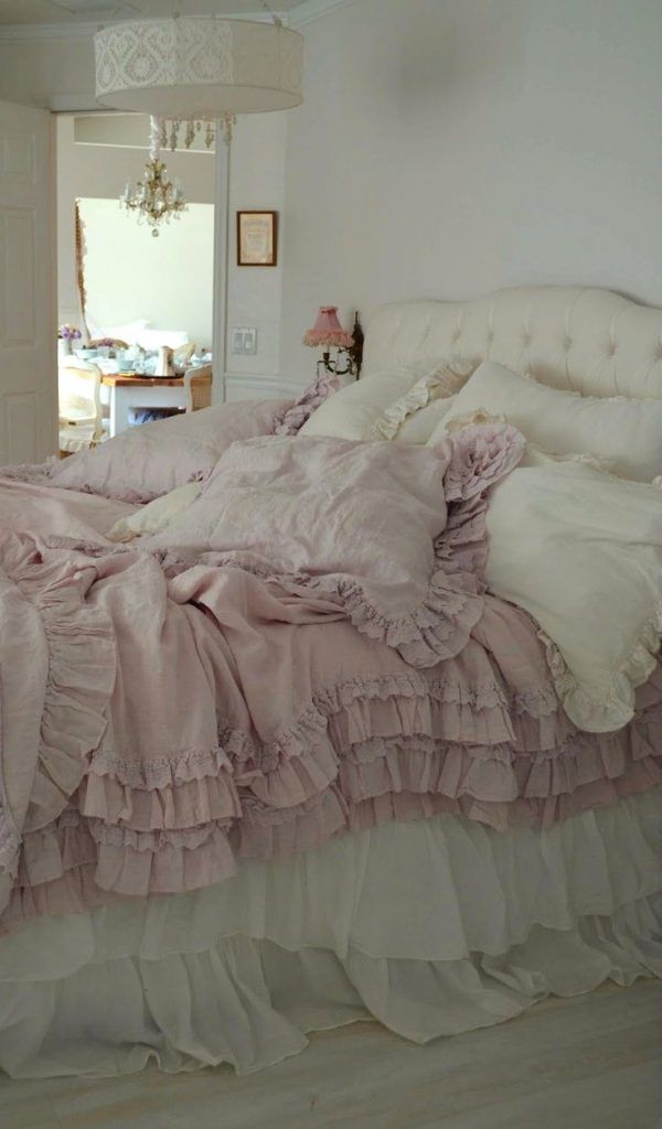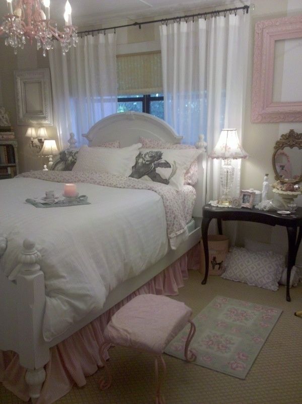 Textilele se regasesc intr-un amestec de texturi. Atentia se concentreaza asupra detaliilor, astfel, intalnim printuri florale si margini dantelate. Asternuturile sunt asezate intr-o eleganta ”sifonata”, iar perdelele sunt in nuante luminoase, cu un aspect plutitor, intim.Sunt folosite lampi cu abajur, candelabre elegante cu lumina calda pentru a crea ambientul intim si confortabil.