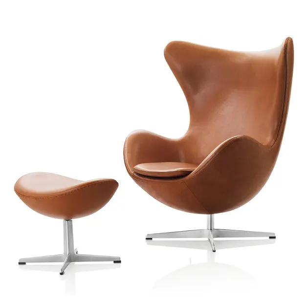 Inspirat de forma perfecta a oului acest fotoliu creat de Arne Jacobsen este un elogiu adus mobilieruluicontemporan, o expresie a liniilor curbe perfecte si a confortului caminului. Fotoliul impreuna cu suportul pentru picioare par a fi sculptate in interiorul unui ou, ranforsat de margini rigide, o comunicare rafinata intre solid si comod, simbolizand siguranta si relaxarea.