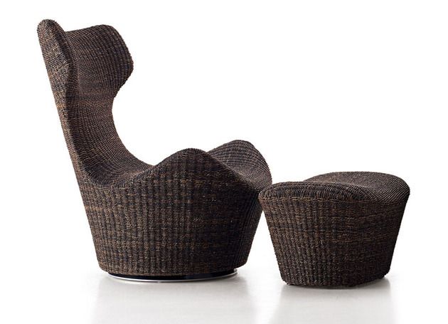 Varianta mai prietenoasa a piesei de mobilier anterioare este fotoliul Grande Papilio Rattan, in culoarea si textura familiare ale ratanului care isi gaseste locul usor si in interioare mai putin rigide si stricte vizual.