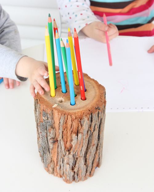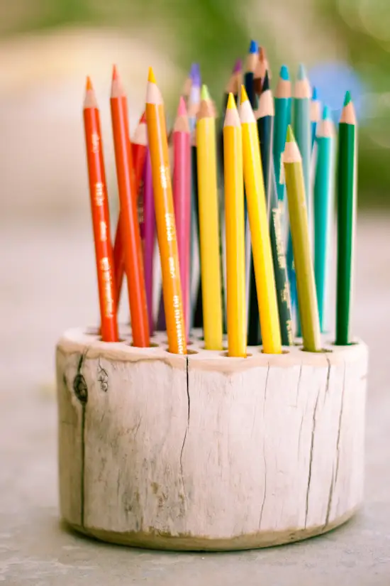 Suport de creioane dintr-o bucata de lemn