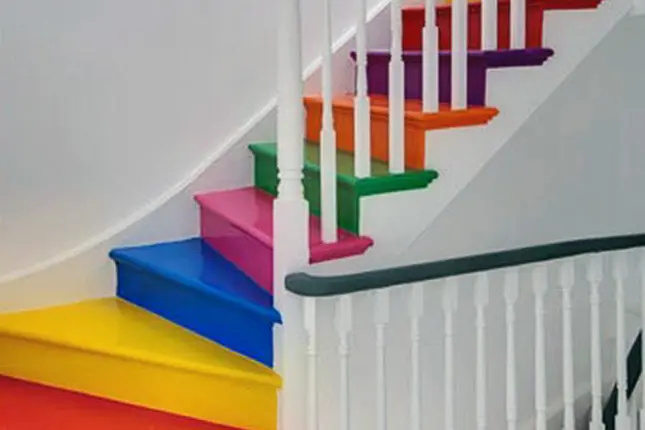 Vopseste fiecare treapta in alta culoare, pentru un efect de curcubeu foarte frumos care sa inveseleasca locuinta