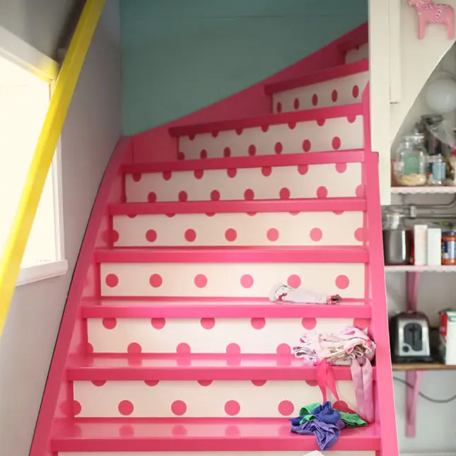 Un astfel de design s-ar potrivi foarte bine pe scarile interioare din camera unei fetite