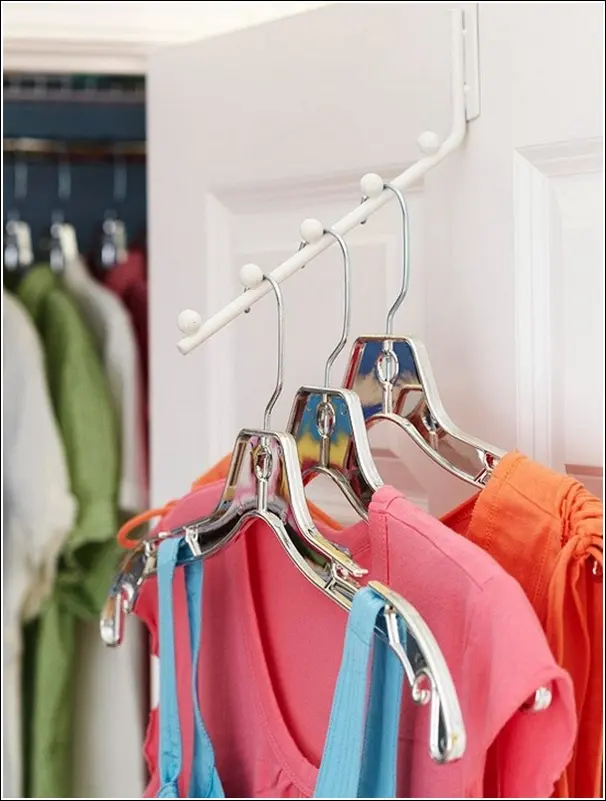 O tija metalica cu agatatoare ar merge perfect pe usa dulapului de haine pe partea din interior. Rochiile s-ar organiza cel mai bine pe o astfel de tija.
