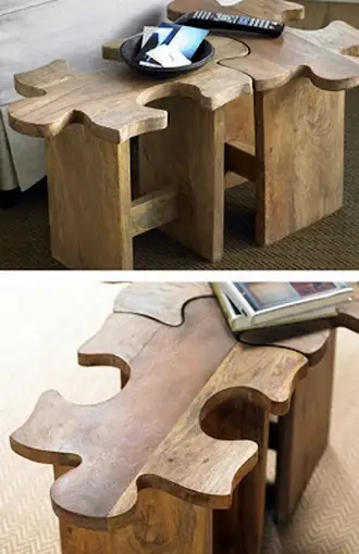 Scaunele puzzle sunt foarte interesante; ca doua piese de puzzle care se conecteaza unul intr-altul. O idee practica pentru un spatiu mic.