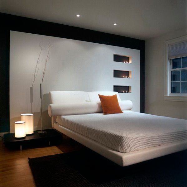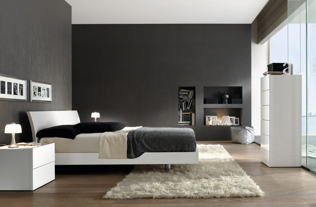 Accente de negru intr-o amenajare minimalista de dormitor