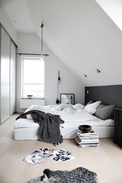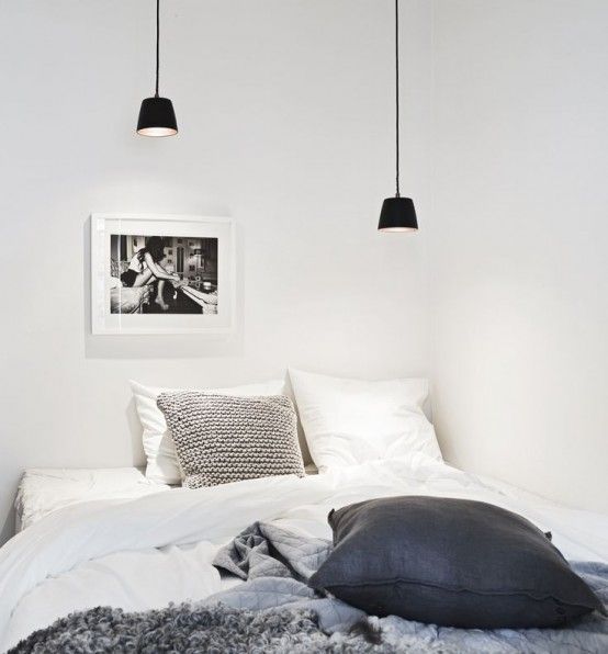 Griurile in tonuri deschise si albul vor spori spatialitatea incaperii, in timp ce accentele de negru, prin contrast, vor crea un impact asupra decorului. Accentele de culoare sunt binevenite: explorati la nivel decorativ – perne, lenjerii sau covorase.