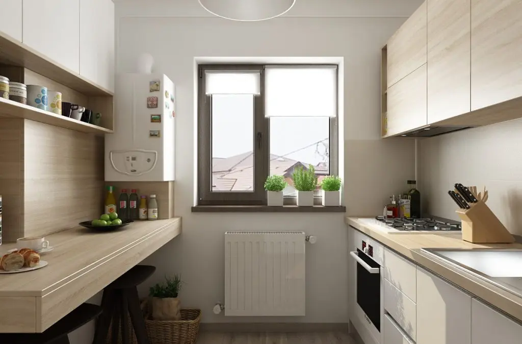 Spatiul mic dintr-o bucatarie de 6 metri patrati te va pune in dificultate atunci cand vei dori sa inserezi si o masa. Gandeste practic! Poti amenaja un loc cu un blat fie la fereastra, fie in continuarea mobilierului. Masa ar trebui sa fie lunga si ingusta ca sa nu afecteze circulatia din bucatarie, iar scaunele neaparat pliabile.