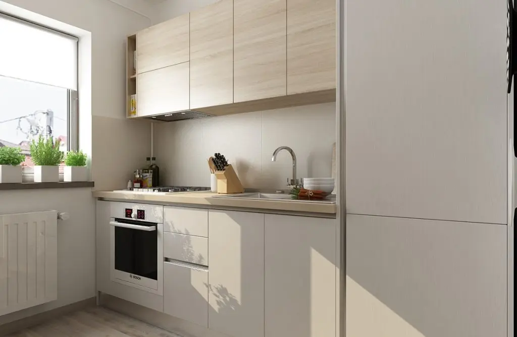 Foloseste nuante deschise atat pentru mobilier, cat si pentru a zugravi peretii. Ca sa maresti vizual spatiul, asigura-te ca in camera patrunde cat mai multa lumina naturala. Cat despre iluminatul artificial, nu te limita la un singur corp, plafoniera nefiind suficienta. Atunci cand gatesti ai nevoie de lumini de accent pe blatul de lucru sau deasupra plitei. Am dezbatut pe larg subiectul aici. Mizeaza pe suprafete netede, lucioase care reflecta lumina si creeaza iluzia de spatialitate.