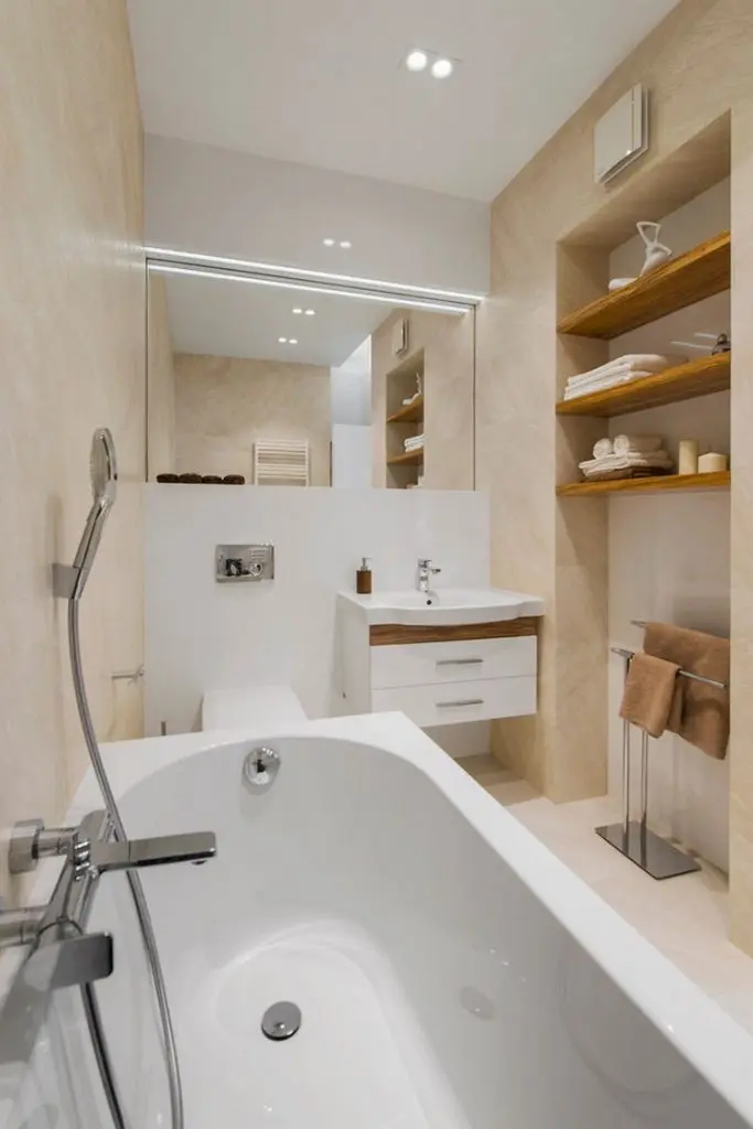 Modelele pe care ti le propunem in galeria foto de mai sus te vor ajuta sa-ti conturezi mai bine o idee despre cum proportiile potrivite de bej in diferite tipuri de bai. Vei remarca ca un rol important il joaca si iluminatul uniform care asigura ca fiecare colt din baie primeste lumina necesara. Spor la amenajat!