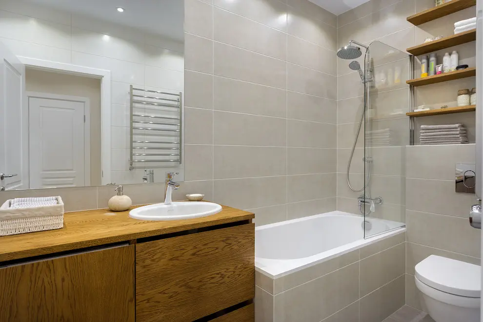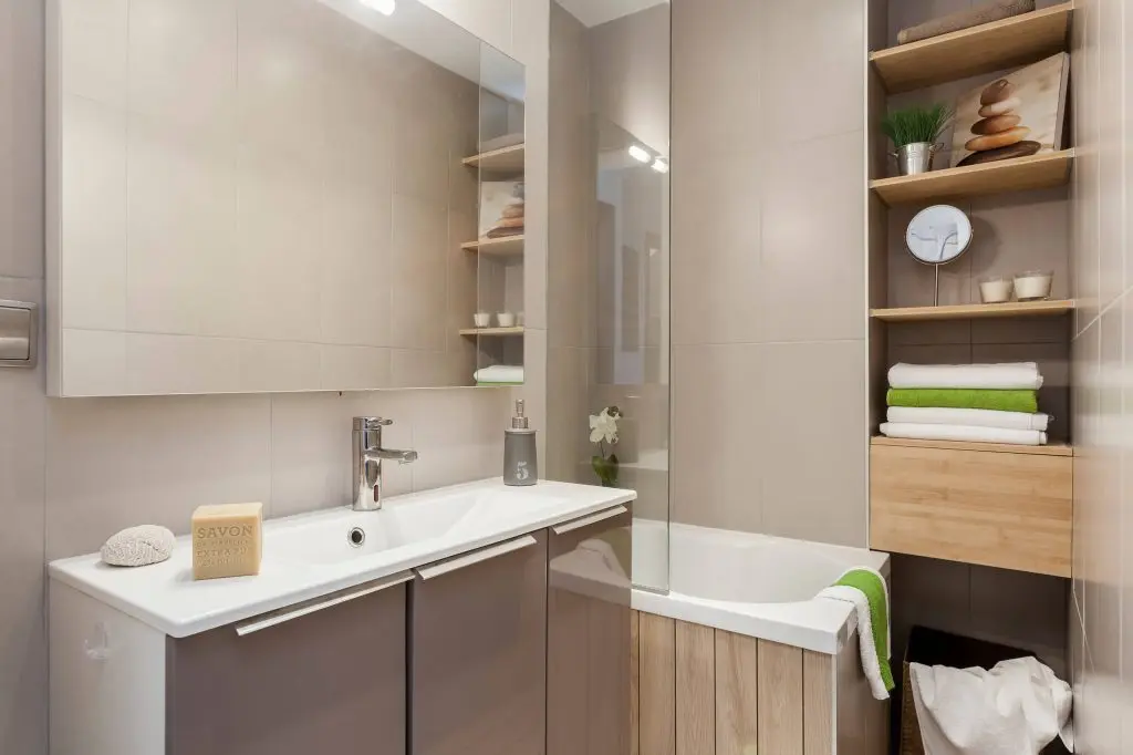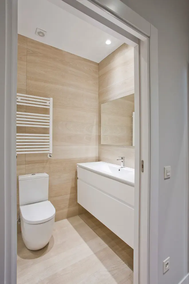 Poti adauga bejul ca nuanta de accent, cum ar fi insertii de placi ceramice care imita lemnul sau chiar lemn. Fie la nivelul pardoselii sau ca o placare a cazii de baie sau pentru a crea un perete-accent, nu vei da gres cu o astfel de abordare.