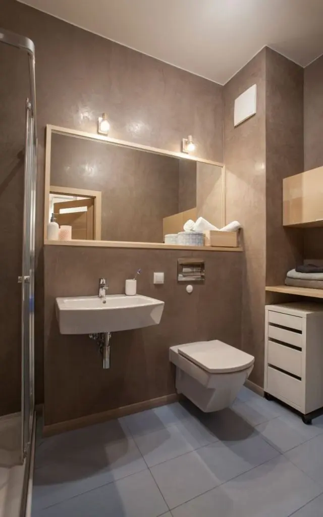In general, baile sunt spatii micisi multe din ele fara lumina naturala. De aceea, trebuie atentie in alegerea bejului potrivit pentru a nu risca un efect neplacut de dezechilibru cromatic. Foloseste alb pentru a aduce un plus de luminozitate spatiului.