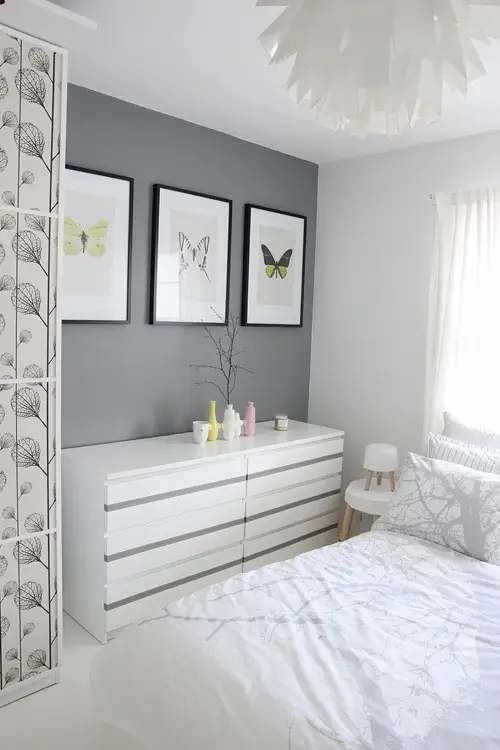Un perete accent va aduce un plus de interes camerei, fiind locul in care se vor fixa toate privirile la intrarea in camera. Puteti miza pe acest aspect si aduce impreuna diferite piese de arta (tablouri) sau un colaj de fotografii.