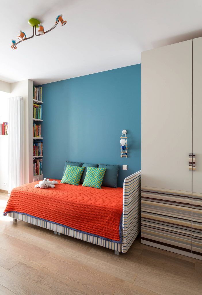 Pentru cei care iubesc cartile, peretele accent al camerei poate fi construit dintr-o biblioteca cu toate titlurile preferate; puteti adauga printre ele mici decoratiuni pentru un plus de interes.