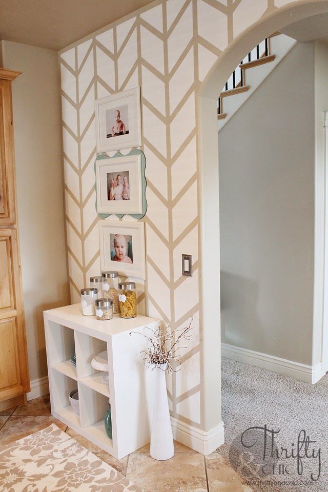 Un tapet cu un model abstract sau pattern creat cu stencil(cu un sablon decorativ) este o idee interesanta de folosit pentru camera copiilor. Veti obtine un perete accent de exceptie cu vopseaua de tabla scolara in bucatarie, pe un dulap sau in camera unde se joaca copiii sau chiar in fata biroului. Veti putea scrie pe perete si desena in fiecare zi altceva.