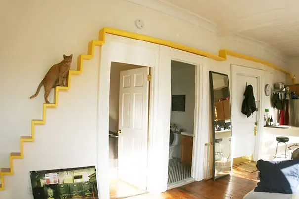 6. Trepte din lemn prinse de perete. Poate fi noul loc de joaca pentru pisica dumneavoastra, iar daca este aleasa culoarea potrivita poate fi integrata perfect in decorul din casa.