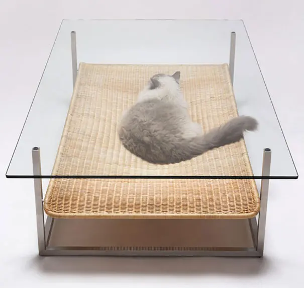 7. Masuta de cafea prevazuta cu pat pentru pisica. Priviti si va minuati.