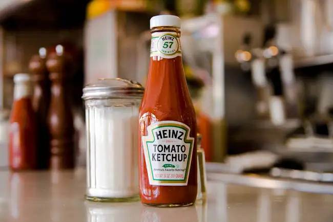 Ketchup-ul functioneaza foarte bine atunci cand veti curata obiectele din cupru. Lasati sa actioneze intre 5 si 15 minute. Acidul din sos va inlatura petele de pe material.