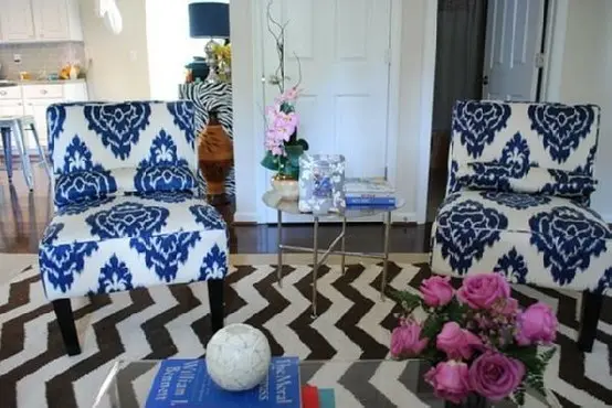 A pune in aceeasi camera, un motiv floral cu unul geometric, este o situatie de evitat. Insa exceptiile ne arata ca motivele nu trebuie neaparat sa se potriveasca, ci mai degraba sa se coordoneze intr-un decor si sa ofere coeziune.