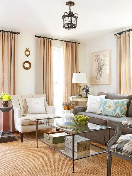 Evitati sa imprastiati piese de mobilier cum ar fi masute sau un otoman de-a lungul camerei doar din dorinta de a acoperi tot spatiul. Folositi-le in schimb pentru a crea coerenta. Astfel, otomanul poate sta sub masuta de cafea sau doua masute de cafea identice pot fi plasate una langa alta.