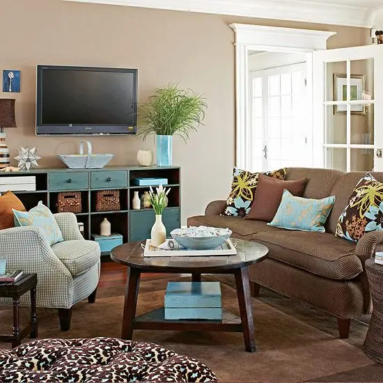 Pentru living, luati in considerare o aranjare intr-o forma rotunda. Astfel, plasati canapeaua, fotoliile sau scaunele circular, intr-o forma confortabila care sa inlesneasca conversatiile intre oameni. Apoi restul de mobila, ar trebui sa formeze niste bariere in jurul acestui cerc: dulapul sau etajerele pot fi dispuse de-a lungul peretilor.