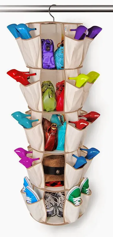 Organizatorul pentru sifonier poate fi agatat pe bara din interiorul acestuia, iar in compartimentele lui pot fi depozitate atat incaltamintea cat si posete, imbracaminte si alte accesorii.