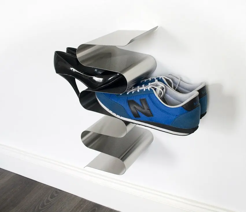 Cuier ondulat pe care se pot stuvui pantofii. Forma interesanta a acestuia ofera spatiului un aer de nonconformis.