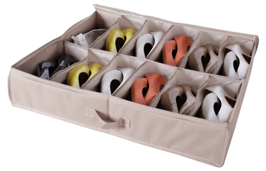 Organizator din material textil care poate fi depozitat sub pat. Are un capac care se inchide cu fermoar si care impiedica depunerea prafului.