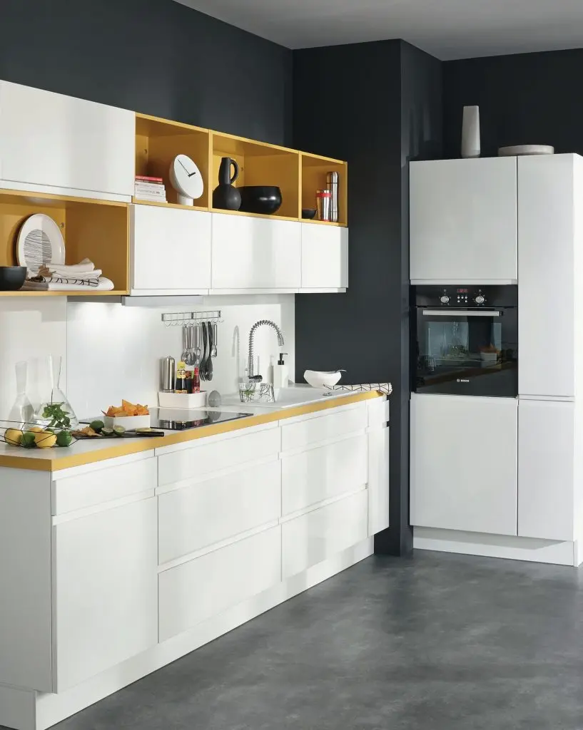 Albul continua sa fie in tendinte. Un alb impecabil va fi mereu atu-ul oricarei bucatarii. Pentru cei care isi doresc sa scoata bucataria din anonimatul albului, se poate opta pentru contraste alb-negru, sau accente colorate pe care albul sa le puna in valoare ca in cazul celui de-al doilea model din galerie.
