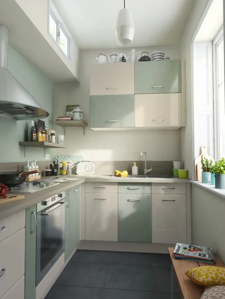 Functionalitatea intr-o bucatarie mica este lucrul cel mai important. Iar cea de-a sasea amenajare propusa intruchipeaza perfect aceasta idee.