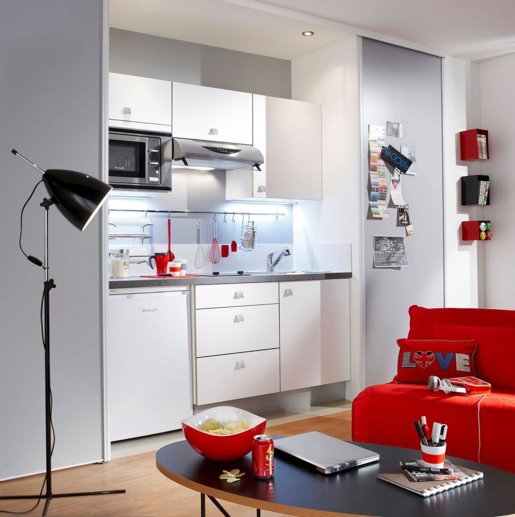 Intr-o garsonierasau intr-un apartament tip studio, spatiul dedicat bucatariei este de cele mai multe ori foarte limitat. In acest caz, o chicineta compacta (eventual deschisa catre camera) dotata cu minimul necesar va fi solutia potrivita.