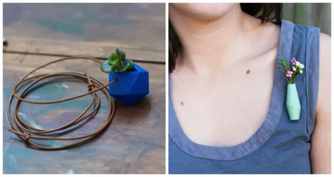 Bijuterii din plante. Aceste mici ghivece cu plante au fost special create pentru a fi purtate ca si bijuterii. Se pare ca natura este din nou la moda.