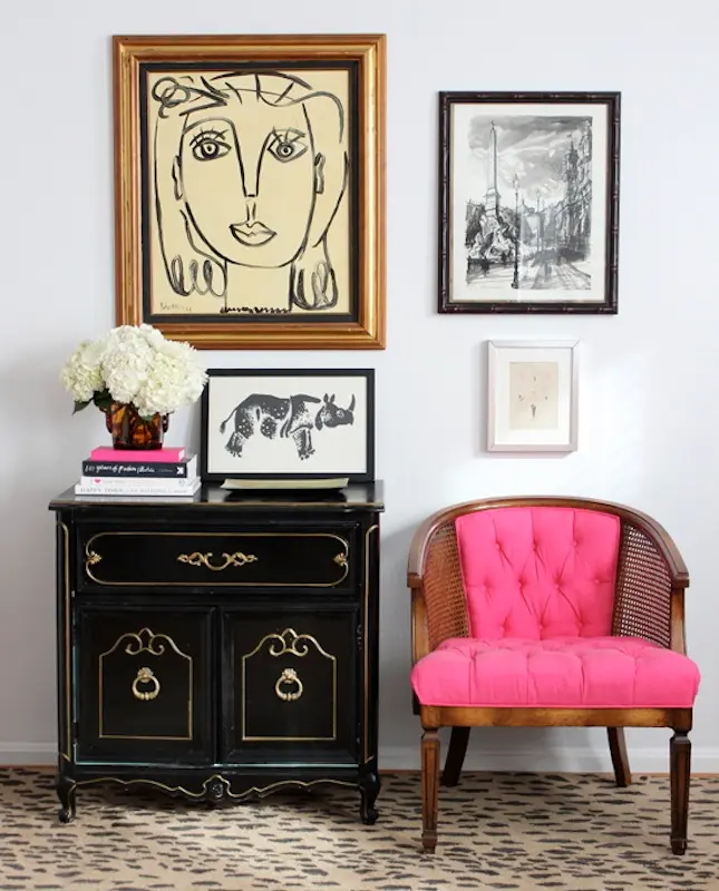 Roz bonbon pe perete? De ce nu. Nu e ok sa varuiesti o camera intreaga pentru ca este posibil sa devii foarte agitata intr-o camera de culoarea fondantelor, insa un perete ingust si inalt sau un perete cu tablouri in alb si negru ar putea fi colorat cu incredere.