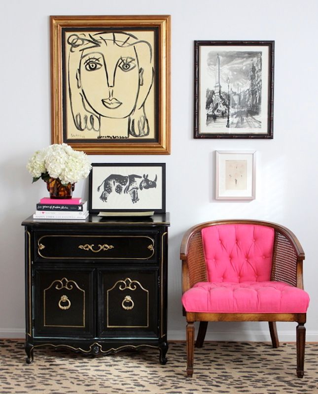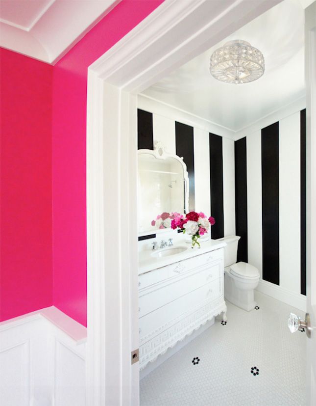 Roz bonbon pe perete? De ce nu. Nu e ok sa varuiesti o camera intreaga pentru ca este posibil sa devii foarte agitata intr-o camera de culoarea fondantelor, insa un perete ingust si inalt sau un perete cu tablouri in alb si negru ar putea fi colorat cu incredere.
