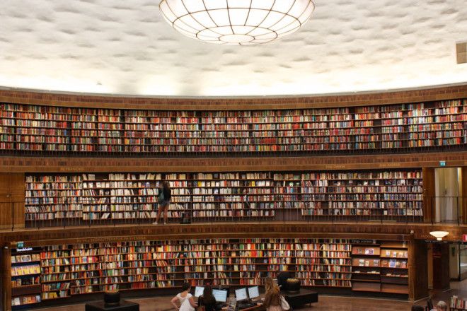 Biblioteca publica din Stockholm, Stockholm, Sweden: Biblioteca publica din Stockholm a fost construita de arhitectul Gunnar Asplund si este una dintre principalele atractii ale orasului. Aceasta a fost deschisa publicului in 1928 si a fost prima biblioteca din Suedia in care vizitatorii puteau avea acces la manuscrise fara permisiunea personalului bibliotecii.