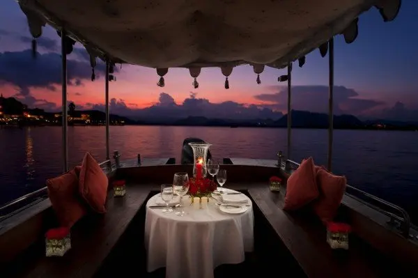 O masa amplasata direct in apa este unul dintre cele mai romantice moduri prin care poti sa iti surprinzi partenerul.