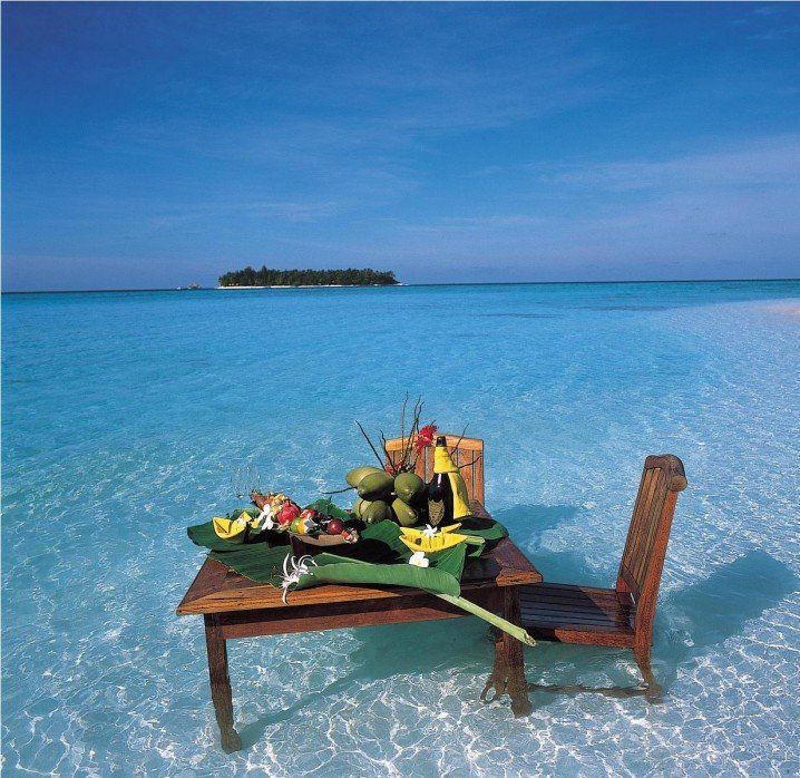 O masa amplasata direct in apa este unul dintre cele mai romantice moduri prin care poti sa iti surprinzi partenerul.