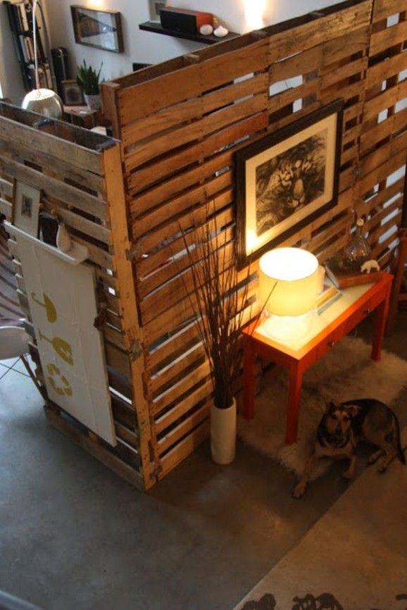 Idee de compartimentare neconventionala a unui spatiu cu paleti reciclati