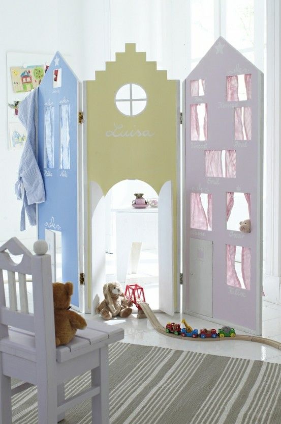 In cazul in care aveti o casa minimalista sau contemporana, realizati un perete care se ridica la doua treimi deasupra podelei dintr-un suport in care ati infipt cateva placi de lemn la inaltimi diferite sau crengi de copac. Puteti, de asemenea, face separarea cu un panou montat pe doua picioare metalice in podea, iar pe panou fie aplicati vopsea de tabla scolara, fie il pictati in culori vesele, in ton cu amenajarea dumneavoastra.