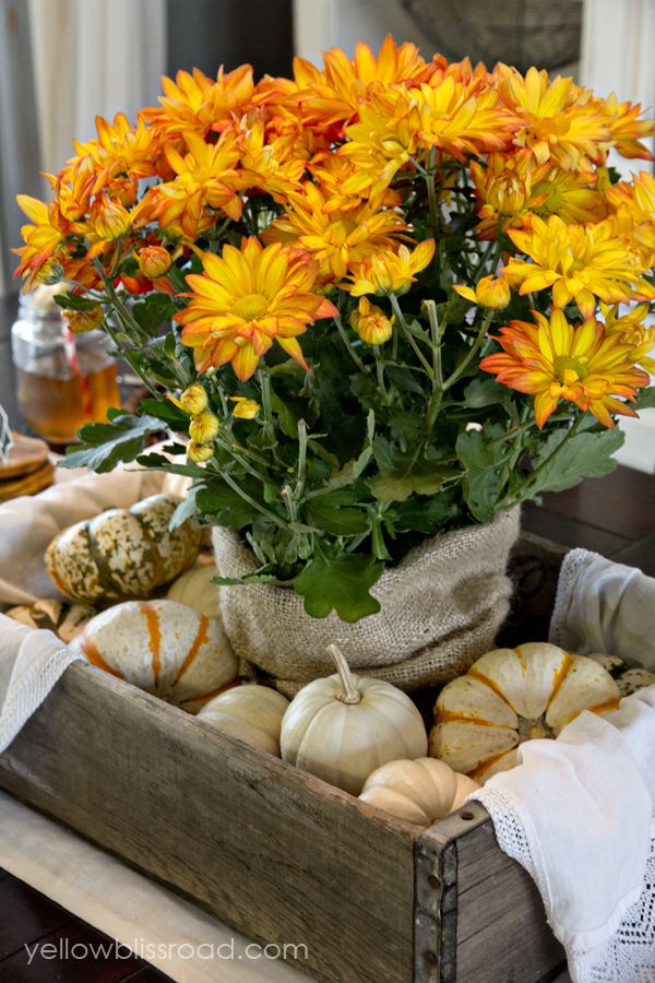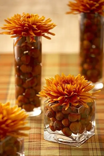 Ia un bol si umple-l cu nuci, ghinde si castane pe un pat de frunze uscate. Alege din florile toamnei, crizanteme, galbenele, ochiul boului si asaza-le frumos in vaze pentru ca aromele toamnei sa patrunda in fiecare colt din casa. Si ca sa dai putina culoare, infrumuseteaza pervazul ferestrei din bucatarie cu cateva gutui.